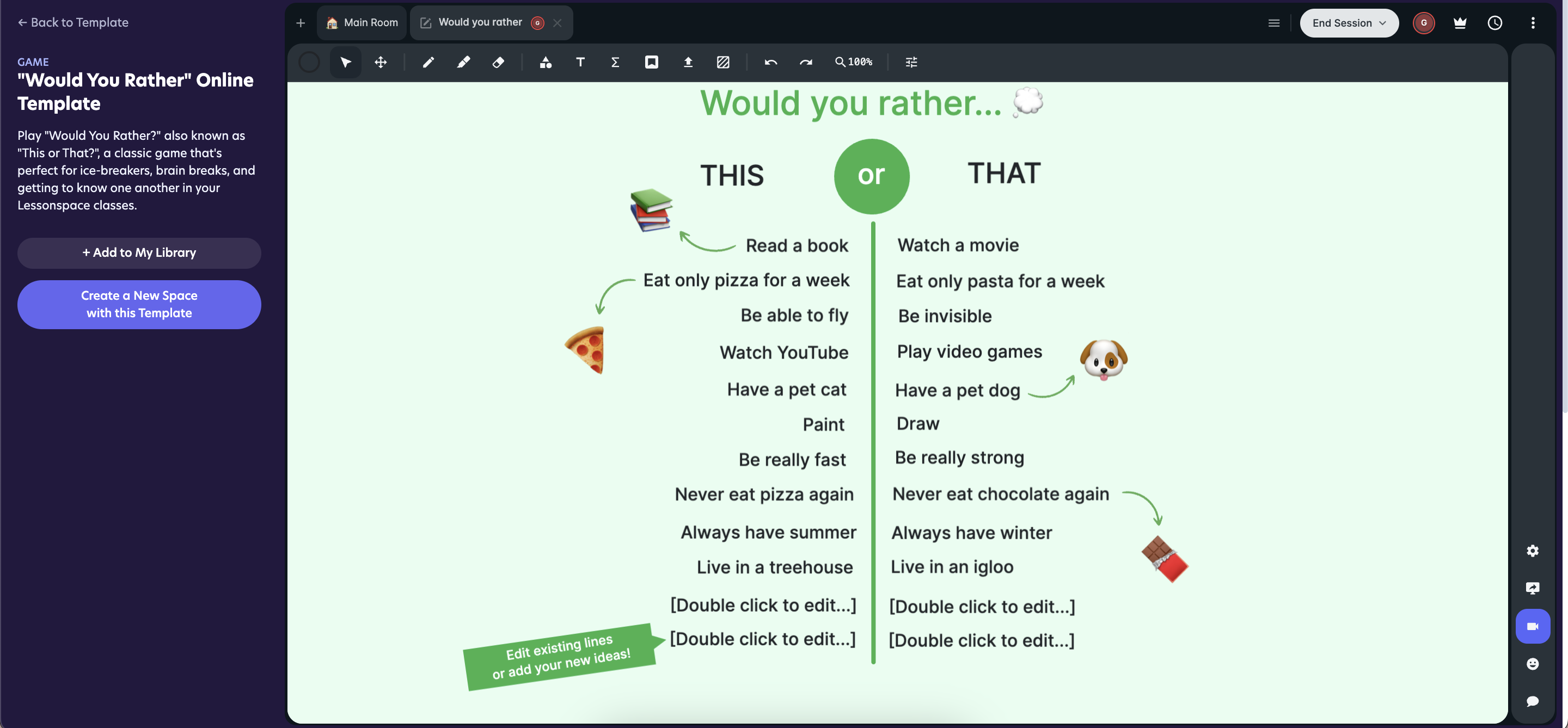 - Go to the Lessonspace Templates page and select a template you like.